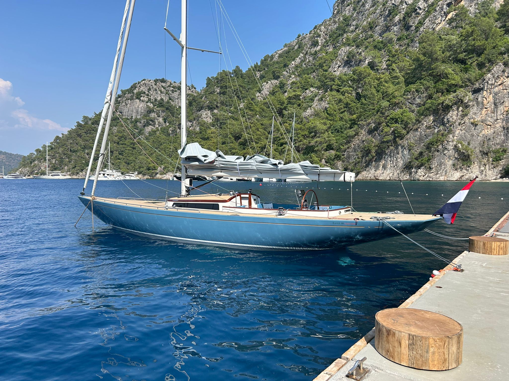 This 46-foot sail yacht combines timeless classic lines with modern keel and rudder appendages, the latest available deck hardware and all sailing controls placed within easy reach of the helmsman. This allows the Eagle 46 to be sailed easily single-handed. After all, we believe that sailing an Eagle should be uncomplicated fun. The Eagle 46 will turn heads not only because of its elegance and timeless appeal, but also because of her exhilarating sailing performance.