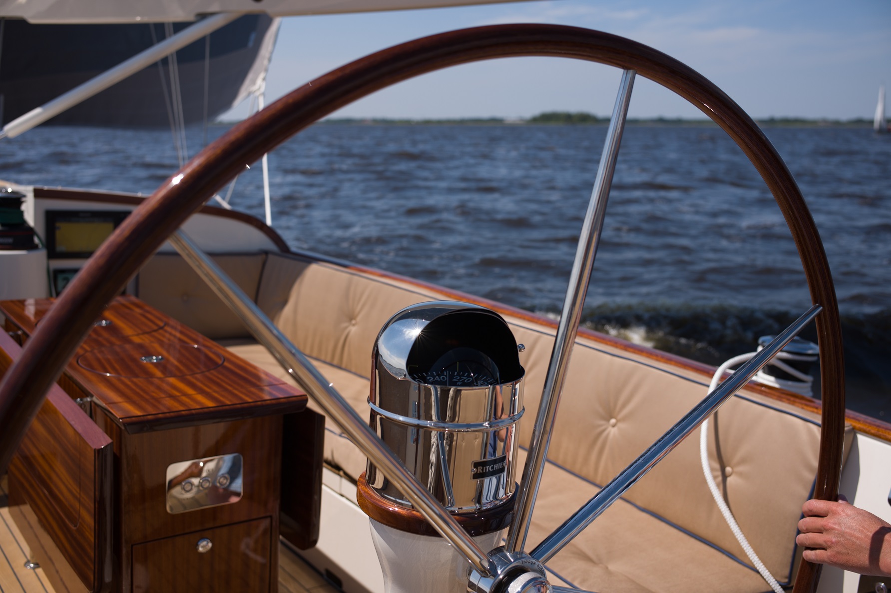 The Eagle 44 is widely regarded as the ultimate daysailer. One of her most distinctive features is the exceptionally spacious cockpit, creating a generous and comfortable area for family and friends on board. At the center of the cockpit, a beautifully finished mahogany table adds both elegance and practicality, making her perfect for relaxed days on the water.